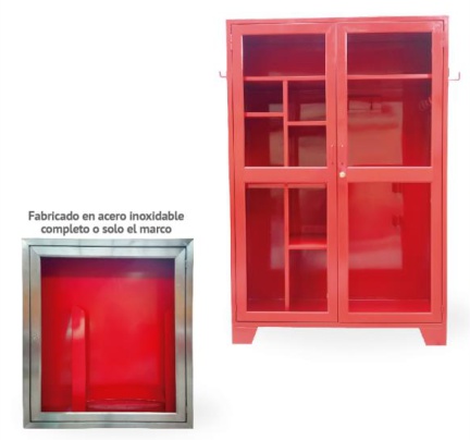 Fabricado en lamina negra lisa calibre 22 terminado en esmalte rojo. Caída de reslpaldo al frente de 2 cm. para corriente pluvial. Chapa Phillips y llave. Categoría: Gabinetes y Botiquines Productos relacionados Porta Extintor Leer más Gabinete Traje de Bombero Leer más Pedestal Armable para Extintor Leer más Gabinete para Hidrante Leer más